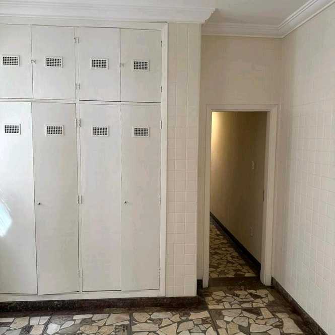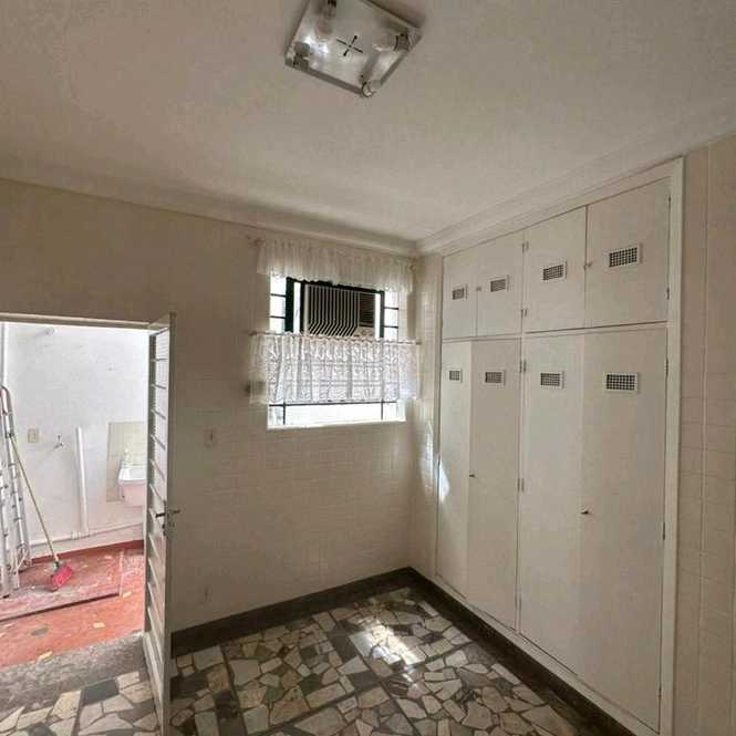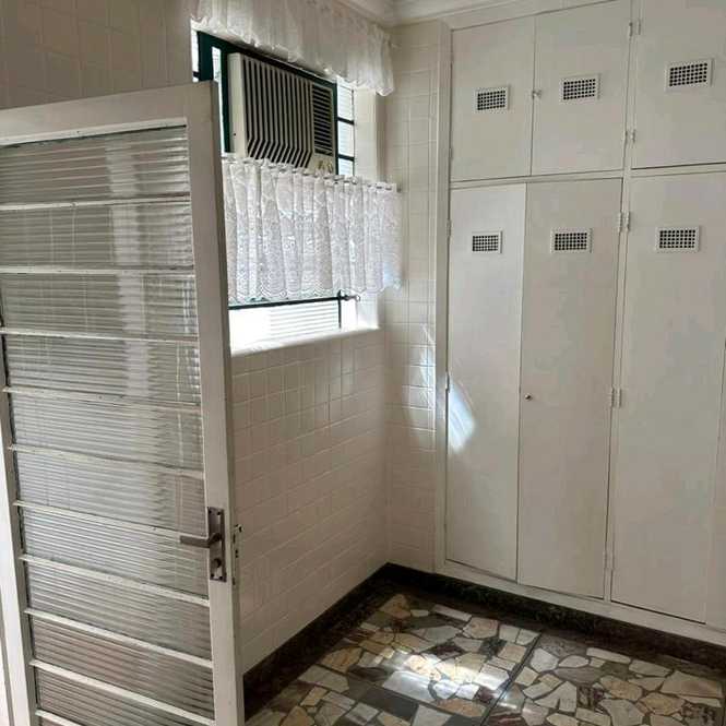 Dormitórios e cozinha com armários. Área de serviço externa.